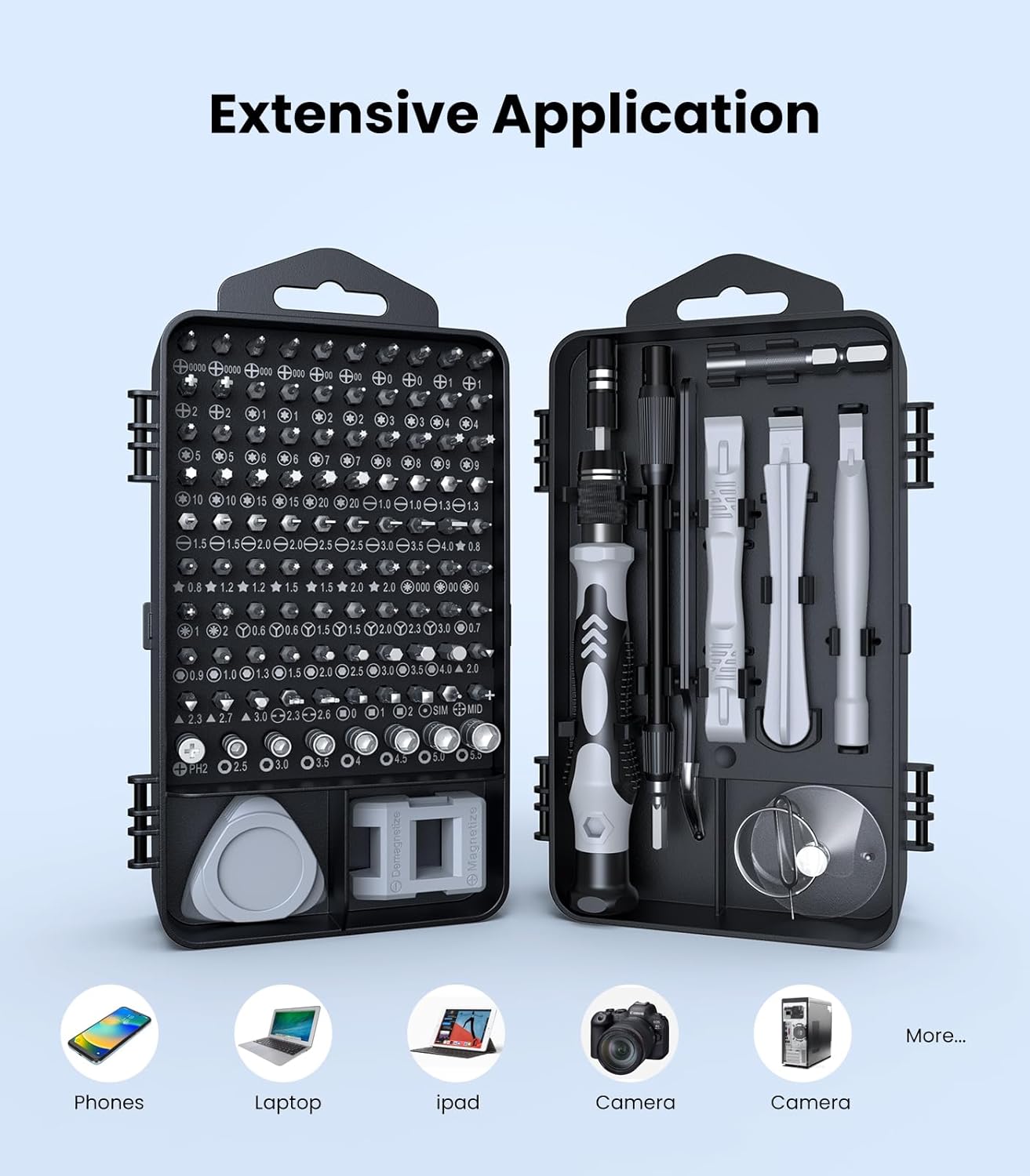 [115in1, Household Must-Have] The small screwdriver set comes with 100 different bits (Phillips, Flat, Torx, Torx Security, Pentalobe, Hexagon, etc.) and various opening tools, ensuring you have the most complete set of repair kit.