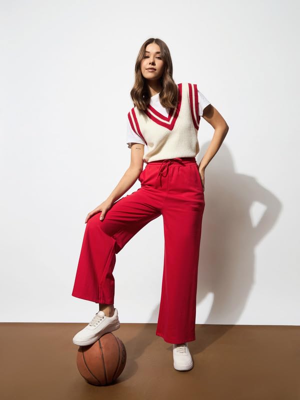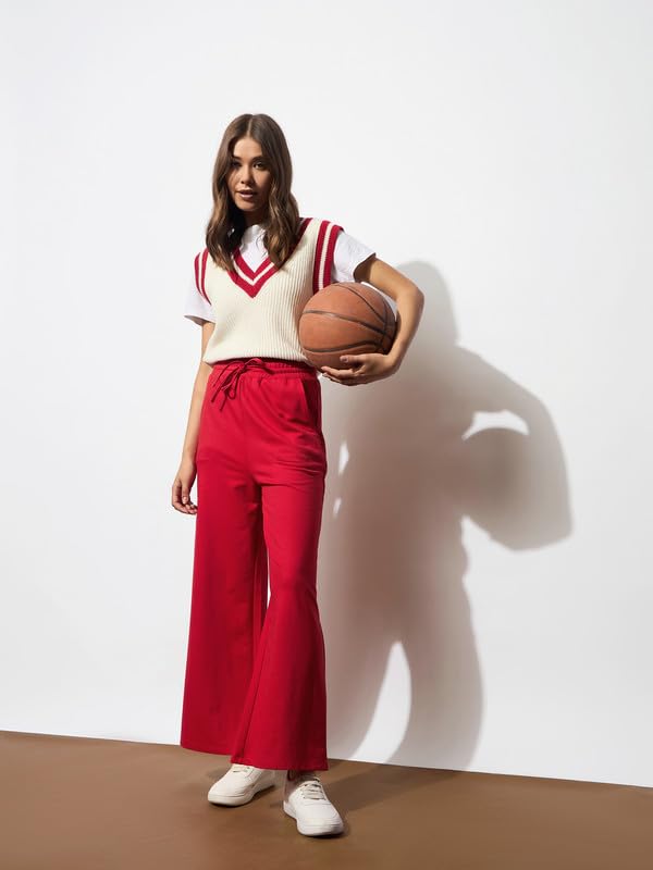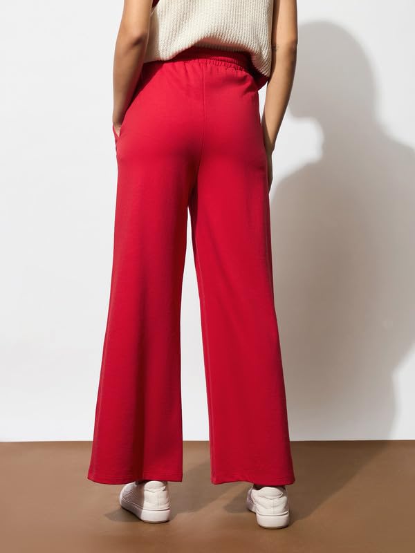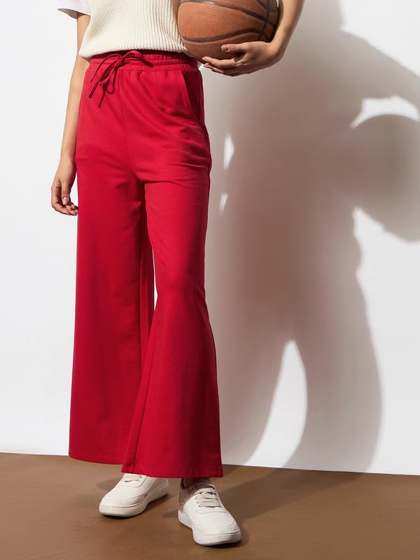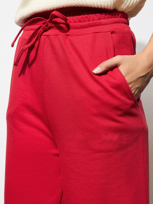 Red Terry Track Pants , in French Terry fabric, NA, Full Length, Comfort Fit, Elasticated Waistline, Straight Hemline and features Drawstring Detail