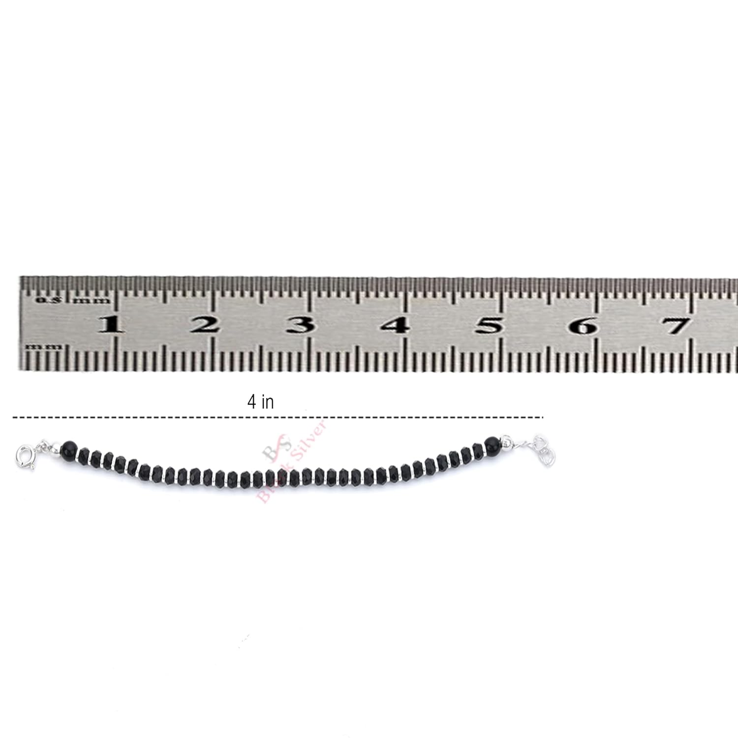 Black Silver Exclusive 925 Sterling Silver Evil Eye Nazariya Bracelet with Small Black Beads for Baby Girls & Baby Boys (Length – 4 Inch, Suitable for New Born to 6 Months)