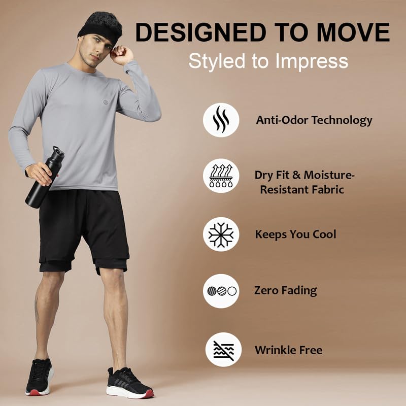 CHKOKKO Men’s Polyester Regular Fit Sports Gym Full Sleeves T-Shirt