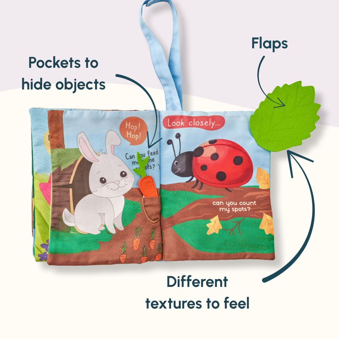 Sensory Development: Every page in this cloth book offers sensory-rich elements such as crinkle paper, soft fabric textures, and movable pieces that stimulate touch and sound. As babies explore, they build sensory awareness, hand-eye coordination, and early motor skills. A great option in sensory toys for babies 6+ months and kids learning books.
