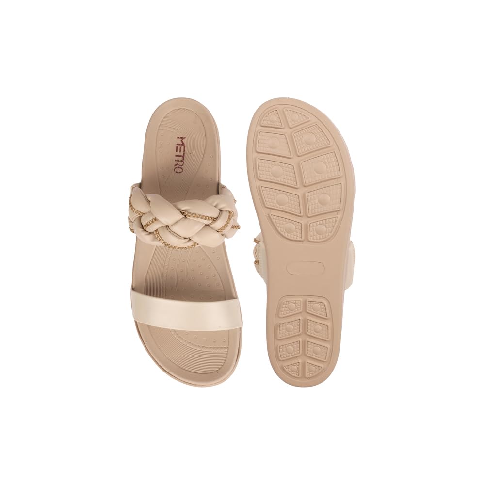 Step into style with the Metro Women’s Platform Heels, where comfort meets chic. These heels feature a unique weave-like strap adorned with a golden chain, providing a sophisticated aesthetic that catches the eye. The platform heel design offers added height without compromising on comfort, making these sandals a perfect choice for extended wear. Lightweight construction ensures ease of movement, making them ideal for both day and night events.