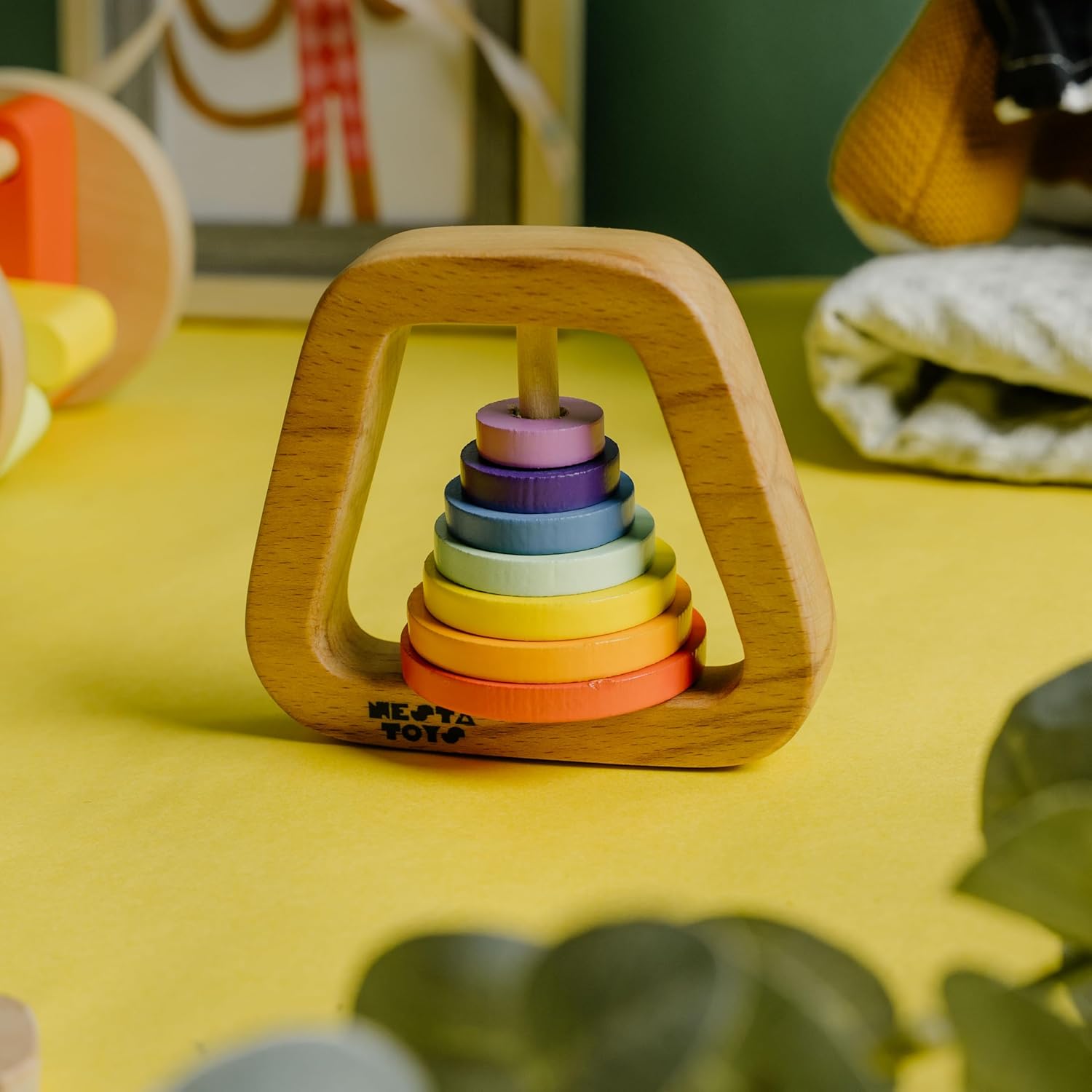 MADE IN INDIA: Made from eco-friendly, non-toxic materials, this timeless rainbow rattle is safe, sturdy, and designed for early childhood development with hours of fun and learning.