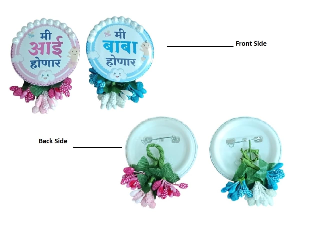 Add a special touch to your Baby Shower celebration with these charming Mi Aai Honar & Mi Baba Honar pin badges! Made from durable plastic, these round-shaped badges feature vibrant designs, perfect for announcing the joyful journey of parenthood. The set includes badges for Mom-to-be & Dad-to-be, making them a great choice for all key family members to wear on the big day. Features : Material: Quality plastic, ensuring durability and comfort. Design: Round shape with playful and heartfelt “Mi Aai Honar” & “Mi Baba Honar” themes, ideal for baby shower celebrations. Decoration: The badges are beautifully decorated with pearls, adding an elegant and whimsical touch to your event. Package Includes: 2 pin badges (Mom-to-be, Dad-to-be 1 piece each) – perfect for celebrating the soon-to-be parents. Occasions: Perfect for Baby Shower parties or any parenthood-themed event. Celebrate the beginning of a new chapter in life with these adorable and eye-catching pin badges, making sure everyone is part of the excitement!