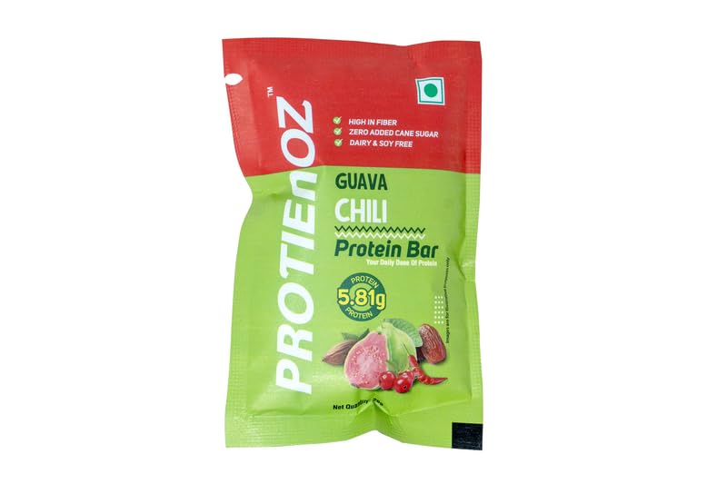 PROTIENOZ No Added Sugar 28 g Guava Chilli Protein Bars | High Protein & Energy Bars | | Pack of 5 x 28g Each | No Preservatives