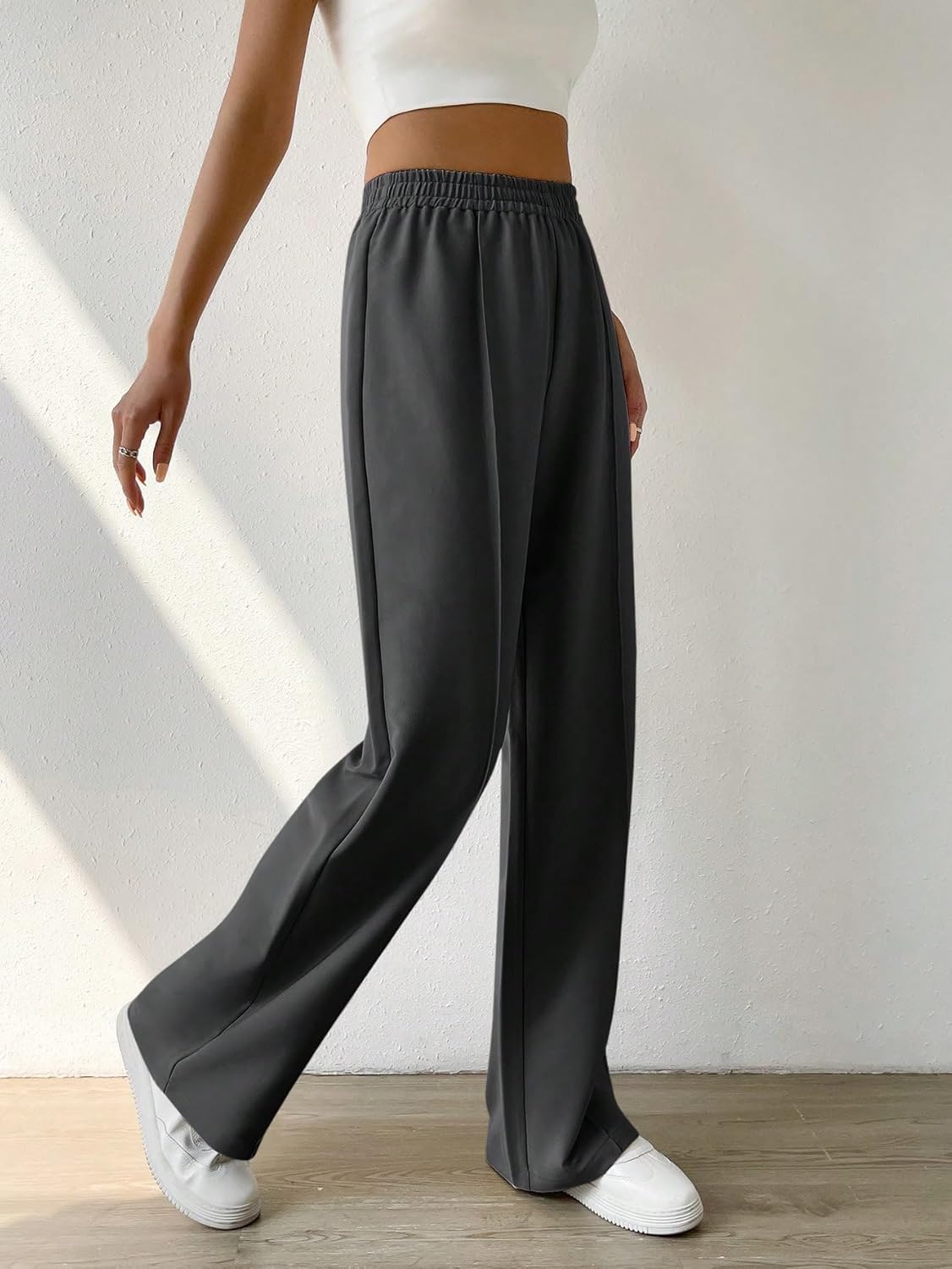 Elevate your wardrobe with these sophisticated wide-leg trousers designed for ultimate comfort and style. The high-waisted silhouette features an elasticated waistband that offers a perfect fit while ensuring ease of movement. These relaxed-fit trousers drape beautifully from hip to hem, creating an elegant flowing silhouette that suits various body types. The versatile design makes these trousers perfect for both casual outings and semi-formal occasions. Pair them with sneakers for a contemporary casual look or dress them up with heels for a more polished appearance. The breathable fabric ensures all-day comfort, while the classic black colour makes it a wardrobe staple that coordinates effortlessly with any top. The straight-leg cut and clean lines provide a lengthening effect, making these trousers a flattering choice for all heights. Perfect for lounging at home or stepping out in style, these trousers offer the ideal blend of comfort and sophistication.