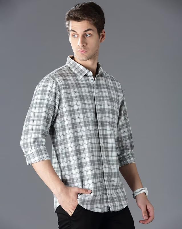 Stylish Full Sleeves Printed Checkered Casual Shirt