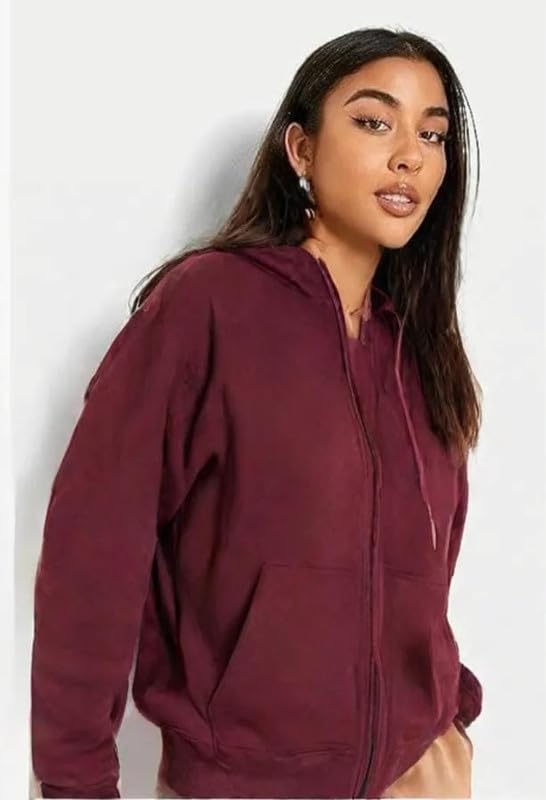 Women’s Full Sleeve Zip-Through Hoodie | Jacket for Women | Breathable, Solid Color Hooded Jacket with Front Zipper Closure